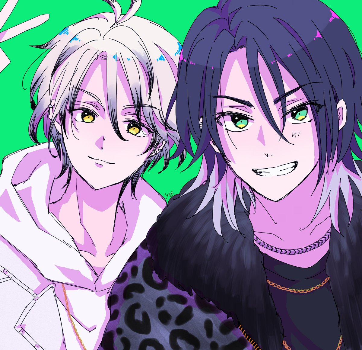 ツルネとスイパラコラボの新規ビジュが嬉しすぎて描いた辻峰3年生コンビ!