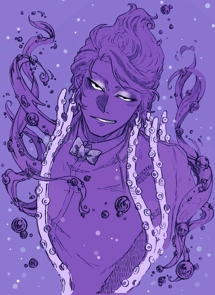 🍎「あの🐙は何をしてるんですか~?」 😈「充電だそうだ~かれこれ30分くらいあぁしているぞ~」 ♥「親友がすごい困った顔してる」