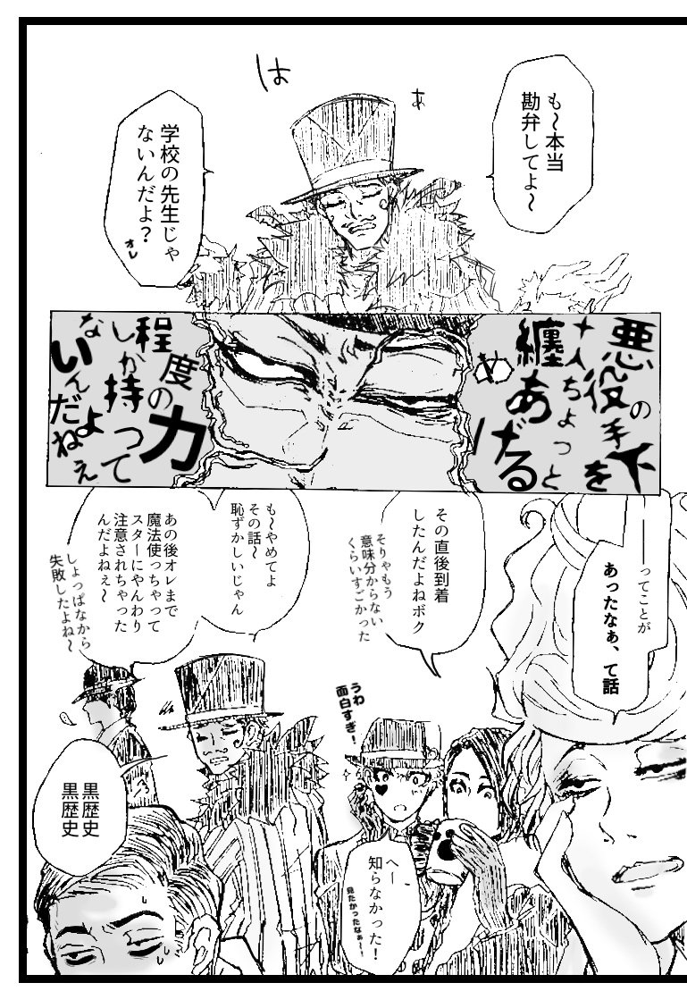 29 232 昔々描いたやつか出てきたので写植したらどうにか読めるようになったわ漫画。🍎😈🎩初年度顔合わせの時の話。 23/04/23 19:06