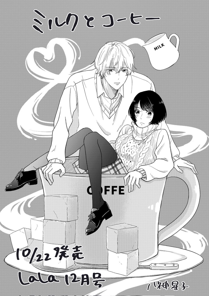 21 45 〇お知らせ〇 本日発売のLaLa12月号に読み切り 「ミルクとコーヒー」 掲載されています✨ コーヒーな女子がミルクなボーイに迫られまくるお話です。 なんのこっちゃですが 意外とがっつり恋愛のお話です〜! めちゃめちゃ楽しく描きました😆 よろしければぜひ読んでみてください😍✨ 21/10/22 17:33