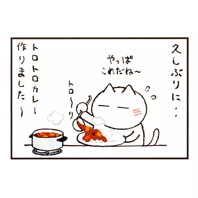 12 95 新・いつも腹ぺこ ネコ谷さん 「カレーライス」(再掲) #漫画 #4コマ漫画 #4コマ #ネコ #ネコ谷さん #漫画が読めるハッシュタグ #カレーライス 23/04/05 19:25