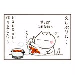3 20 新・いつも腹ぺこ ネコ谷さん 「たこ焼き」(再掲) #漫画 #4コマ漫画 #4コマ #ネコ #ネコ谷さん #漫画が読めるハッシュタグ #たこ焼き 23/04/19 19:25