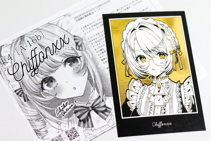 紗倉シホ様 @_shihoncake_ キラッキラのポストカードが可愛くて引き寄せられました 箔押しめっちゃ細かくて凄くない??? どの子も可愛かったんですけど、一番惹かれたメガネの子を購入 私にとって、ザ・可愛いって絵柄で、ストレートに突き刺さりました #コミティア143 #COMITIA143