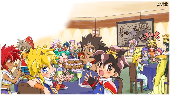 #今までで作画カロリーMAXの作品上げようぜ やはりこれかな…30周年アンソロ寄稿作品。 背景にめでたそうな色の花をもりっと描いたのにほぼ隠れたという無駄な努力をしたりした😂(いつもはコスト削減のために隠れている部分はカラーラフのまま)