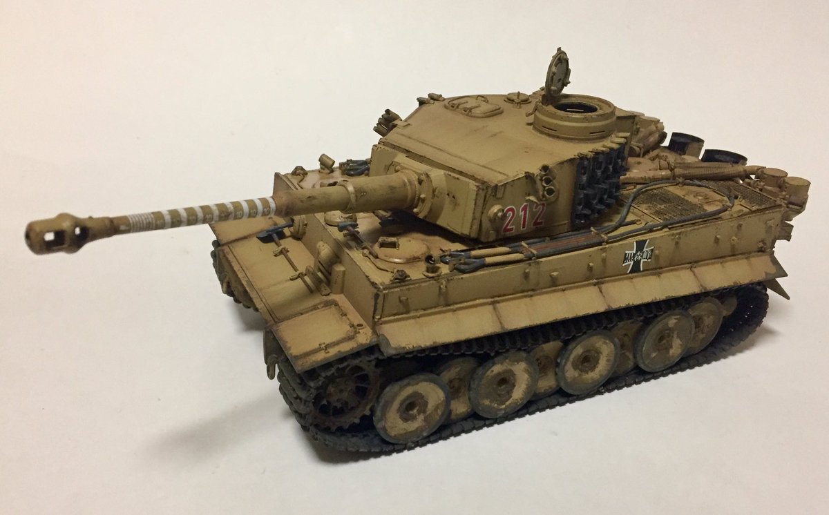 ティーガーI 完成であります 黒森峰の校章を貼り212号車になると 車長はあの人を連想であります #モデラーさんたちがRTしてくれて新たなモデラーさんたちと繋がりたい #模型戦車道 #戦車模型 #今月作ったプラモ晒そうぜ