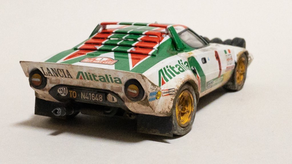 ランチア ストラトスHF1977モンテカルロ ラリー ウィナー 何とか完成しましたの 小学2年生以来のカーモデル製作 ここまで出来れば個人的に充分 #モデラーさんたちがRTしてくれて新たなモデラーさんたちと繋がりたい #今月作ったプラモ晒そうぜ