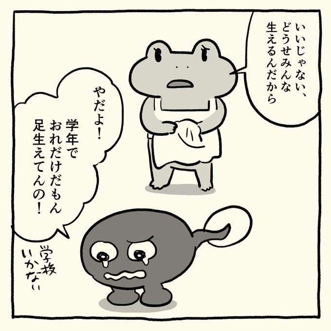 本日ねこおじ、0時頃になります… 待ってようかな〜と思ってくれてる方もいらしたら無理せず、明日にでもぜひ読んでください。。。 いつもありがとうございます🐸✨ ↓過去の落書き。みんなより早く足が生えちゃったことを気にしているおたまじゃくしです。