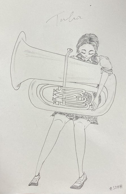 #100日チャレンジ 32日目 チューバも眠い! 合奏中は、低音楽器は放っとかれる率高い😭 数少ない男子が充てがわれるのがTuba‼️かと思えば華奢な女の子がガッツリ吹いてることもある👀✨ #低音はカッコいいぞ #アニメ・ゲーム音楽は活躍できる #曲練は基礎練 #吹奏楽あるある #低音あるある #イラスト