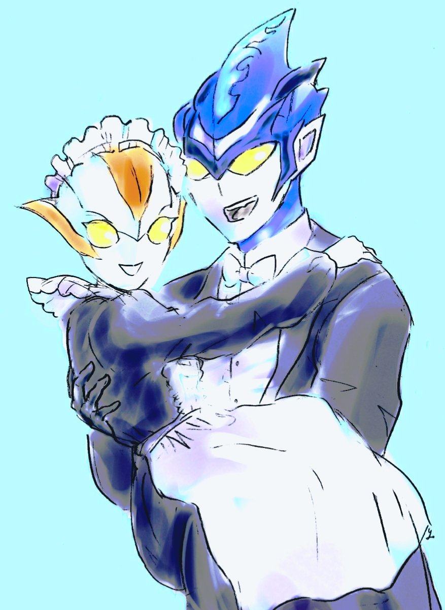 42 129 ③メイド執事④ウルトラマンブル⑤青 #特撮版深夜の真剣お絵描き60分一本勝負R ファンサービスも仕事のうち 21/05/09 23:34
