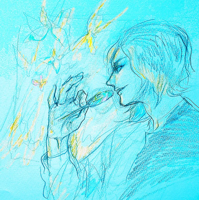 22 57 #特撮版深夜の真剣お絵描き60分一本勝負R ①⑥蝶と戯れる霧崎さん。たぶん燃やす 19/12/26 23:55