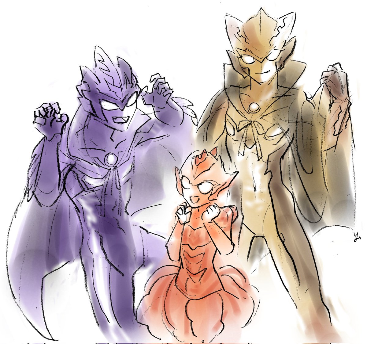 86 285 #特撮版深夜の真剣お絵描き60分一本勝負R ②ウルトラマンR/B ⑤角 早めのハロウィン仕様兄妹。ウィンドとグランドの組み合わせ好きです。 21/09/26 23:25