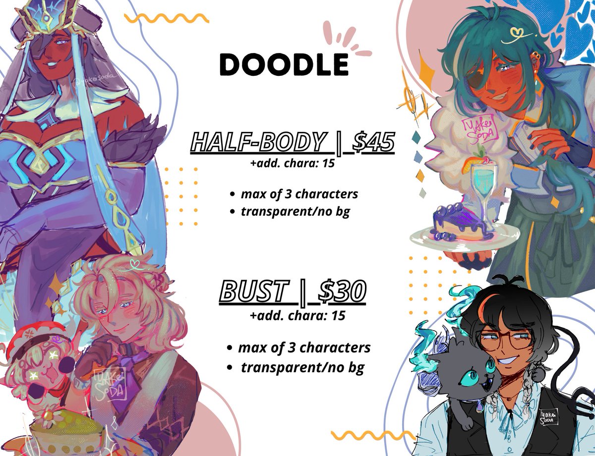[rts highly appreciated :DD!!] HELLO!! opening c0mms again after a while but w more stuff this time : ] pls dm me if interested! #commissionsopen #artcommissions