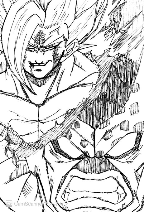 おきなさんと合作させていただきました!(@Okinakokko_314) 線画交換というのが新鮮でとても楽しかったです! 企画 (@OKAYUBENKEI122 ) #ドラゴンボール #イラスト