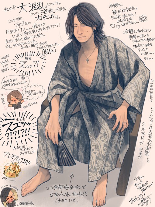 126 617 たくろ〜くんの浴衣とんでもなさすぎてテンション振り切れて眠気がこなくなってしまったからずっと描いてた😂 23/08/01 07:13