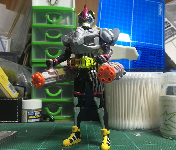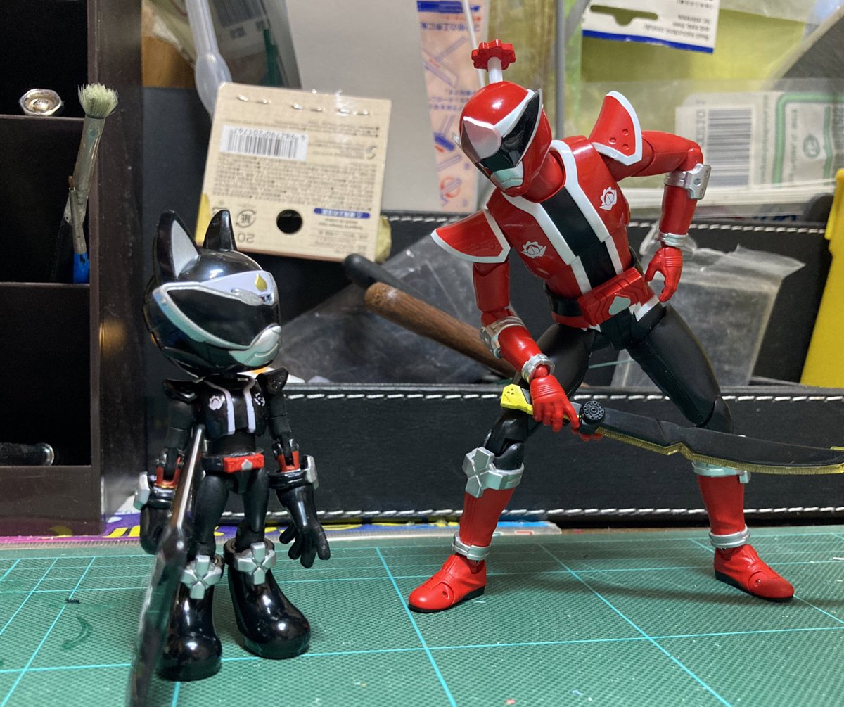 174 678 「全力全開…?なんだそれ。」 S.H.フィギュアーツ ゼンカイザーブラック完成しました。 首延長したり、肩アーマー接続したり、ビームサーベル(?)作ったり、マントに可動仕込んだり色々と 22/06/22 00:33