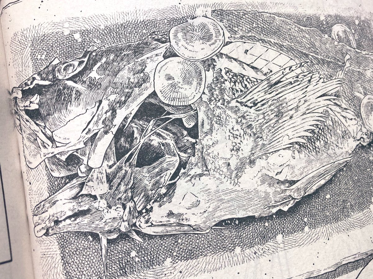 おぼぼぼ明日もアシスタントでございます。 寝る前に…『米蔵夫婦のレシピ帳』第9話で描かせていただいたカサゴの煮付けでも見てやってください… カケアミ頑張った回でした😂 スクリーントーンは使ってません✨😃✨ 生き物系は描くの好きなので楽しい✨☺️✨ #アナログ絵で魅せてみよ