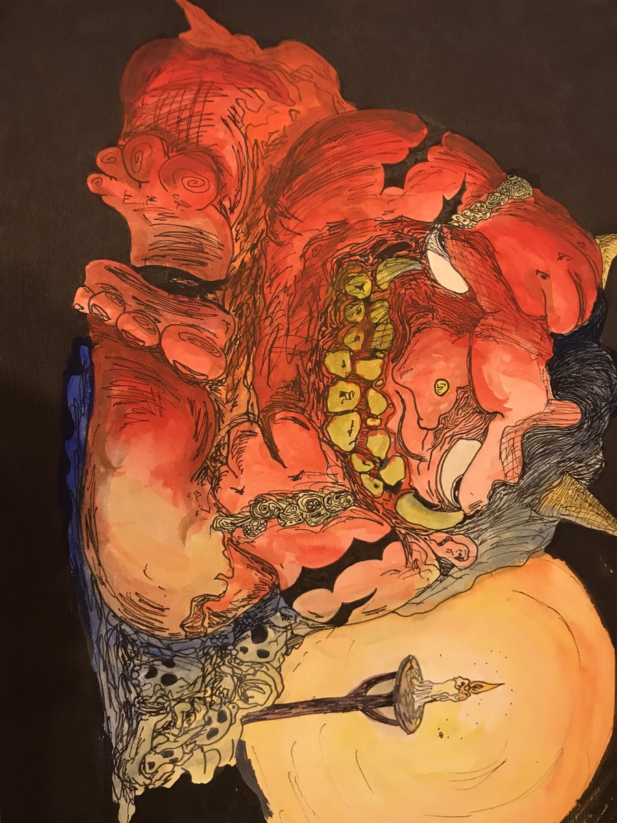 過去作品。 鬼一口。 #いいねかRTで気になった人フォローする #芸術の輪 #芸術同盟 #絵描きさんと繋がりたい #イラスト好きな人と繋がりたい #ツイッターで楽しむ展覧会 #無名絵師 #水木しげる