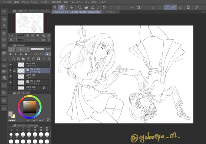 3 36 線画できた! #リコリコ #イラスト 23/04/01 08:54