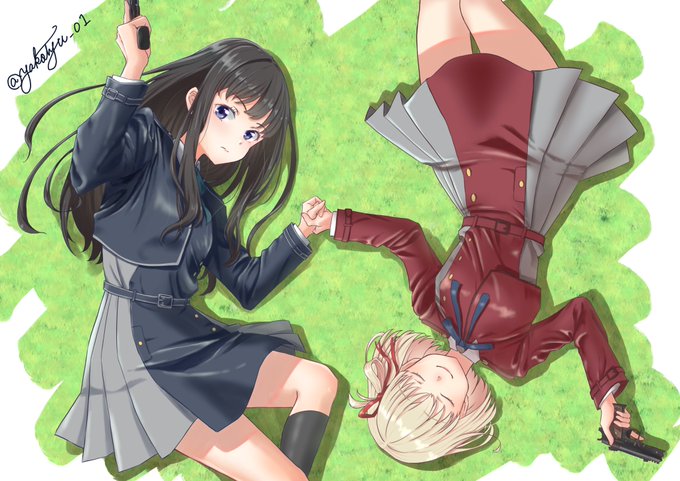 リラックスしてる千束と警戒を怠らないたきな #リコリス・リコイル #リコリコ #イラスト