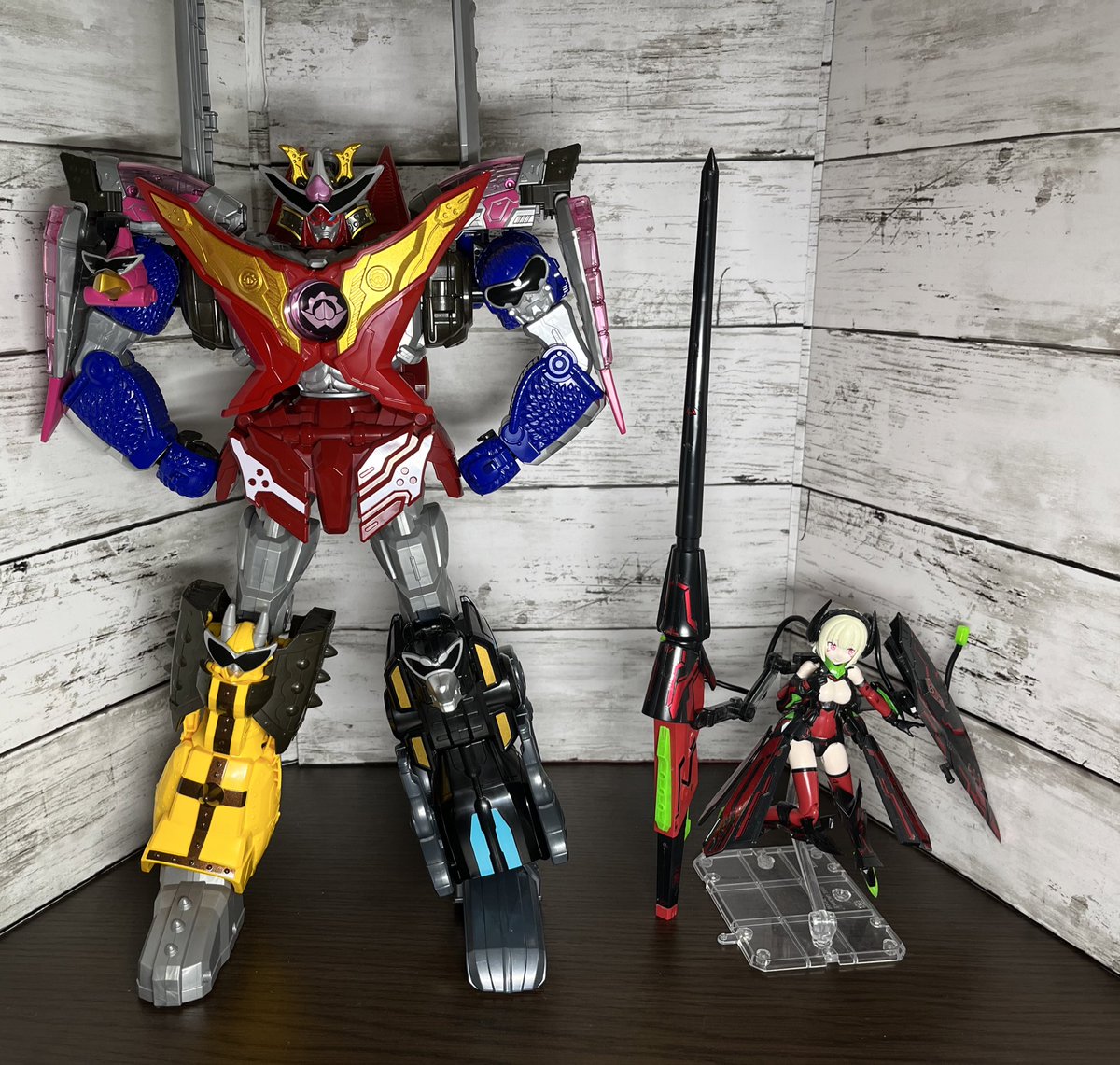 #メガミデバイス 知ってるかい!ランサーの槍はドンオニタイジンの頭身とほぼ同じ長さなんだぜ!!!もはやどっちが規格外なのかよくわかんねぇぜ!!!!