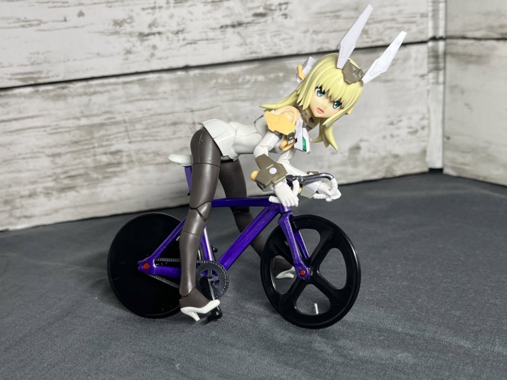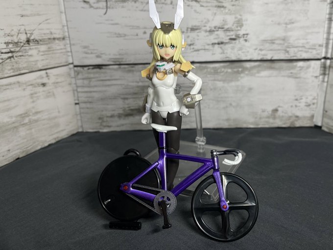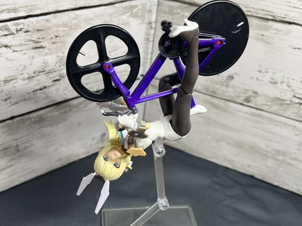 帰りにガチャガチャの自転車回してきました。メガミデバイスに合わせるとちょっと小さいかなー スペシャルサンクス いつもやられ役になってくれるストフリ君 #メガミデバイス