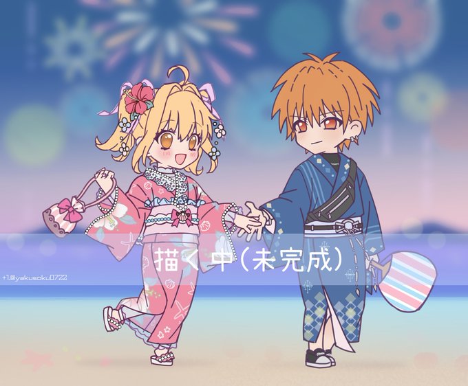 海斗&るちあのアクスタを描く中! 今回のテーマは「浴衣、花火、デート」🩷🎆💙 boothにて6/2日から予約予定です! 前の着物アクスタも一緒に再販する予定です🌟🙏 よろしくお願いします🎀