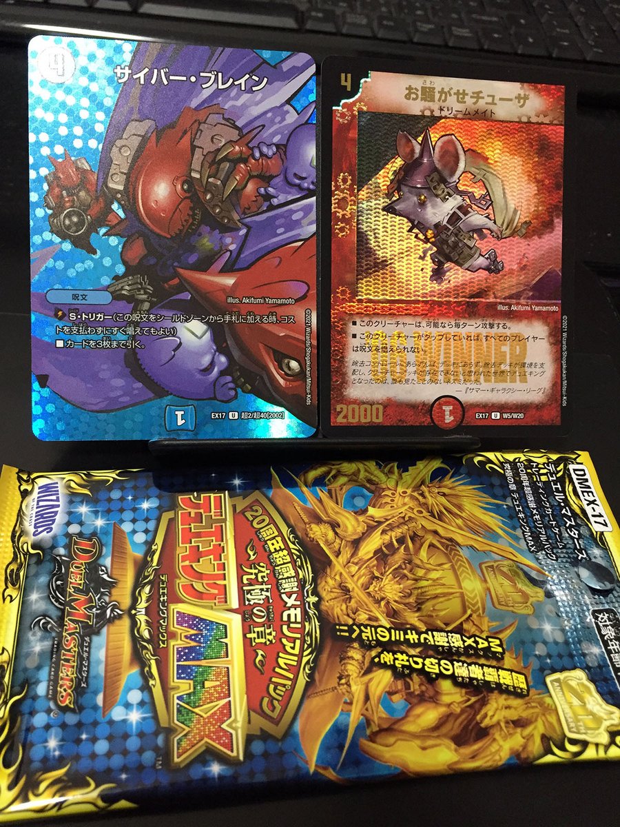 デュエル・マスターズTCG 20周年超感謝メモリアルパック 究極の章 デュエキングMAXのサンプルをいただきましたので紹介します。「お騒がせチューザ」「サイバー・ブレイン」のイラストを担当しました。いずれも再録ですが、フォイル加工で格好良くなってます! dm.takaratomy.co.jp/product/dmex17/ #デュエマ