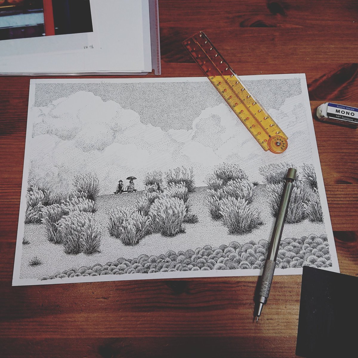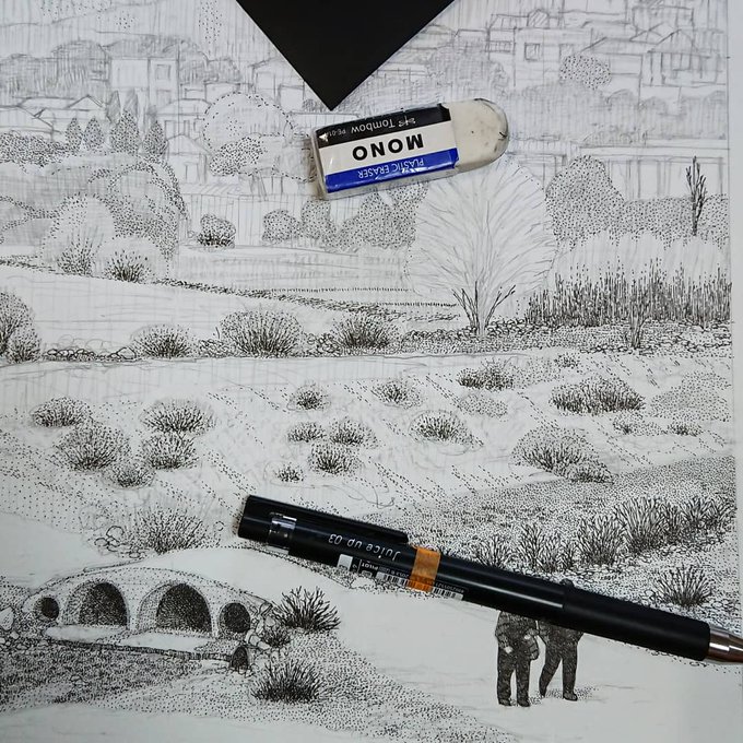 次の下描きはじめました✏️ 背景の空をどういう感じにしようか悩んでいます。 #illustration #drawing #artwork #イラスト #ドローイング #ボールペン #ペン画 #ボールペンイラスト #点描 #イラストレーター #ballpointpen