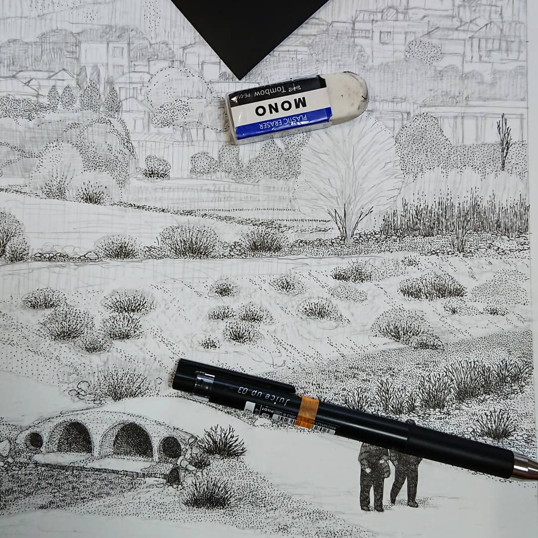 ちまちまペン入れしてます✒️ #illustration #drawing #artwork #イラスト #ドローイング #ボールペン #ペン画 #ボールペンイラスト #点描 #イラストレーター #イラストグラム #ballpointpen
