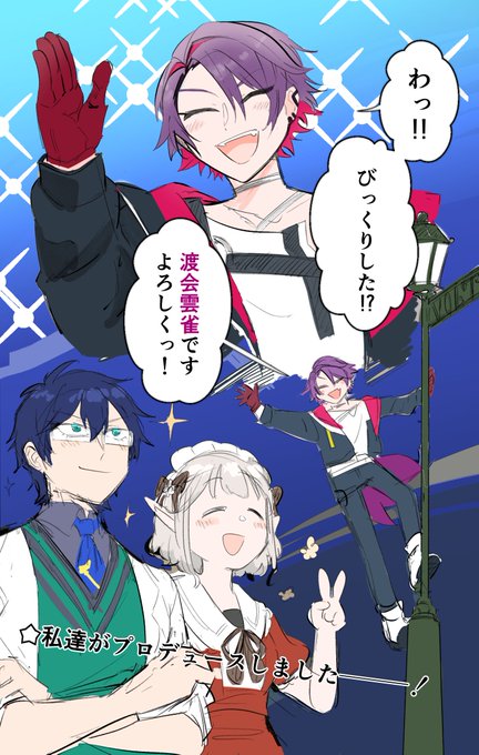 信じて送り出した渡会君が! にじヌーン月組 #えるの絵だよ #まめねことレオス #わたらいらすと