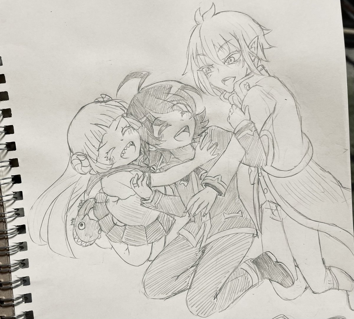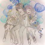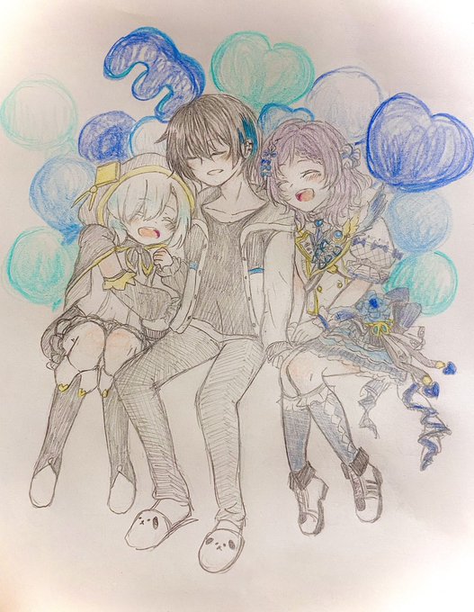 #1日1絵(再投稿ごめんなさい) 3周年おめでとうございます! 3人揃ってぶるーず💙 #灰画 #マル描いてちょんっ #ういはぁーと #ぶるーず