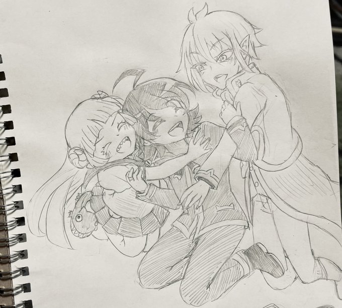 8 33 #1日1絵(再投稿ごめんなさい) 3周年おめでとうございます! 3人揃ってぶるーず💙 #灰画 #マル描いてちょんっ #ういはぁーと #ぶるーず 22/07/29 00:36