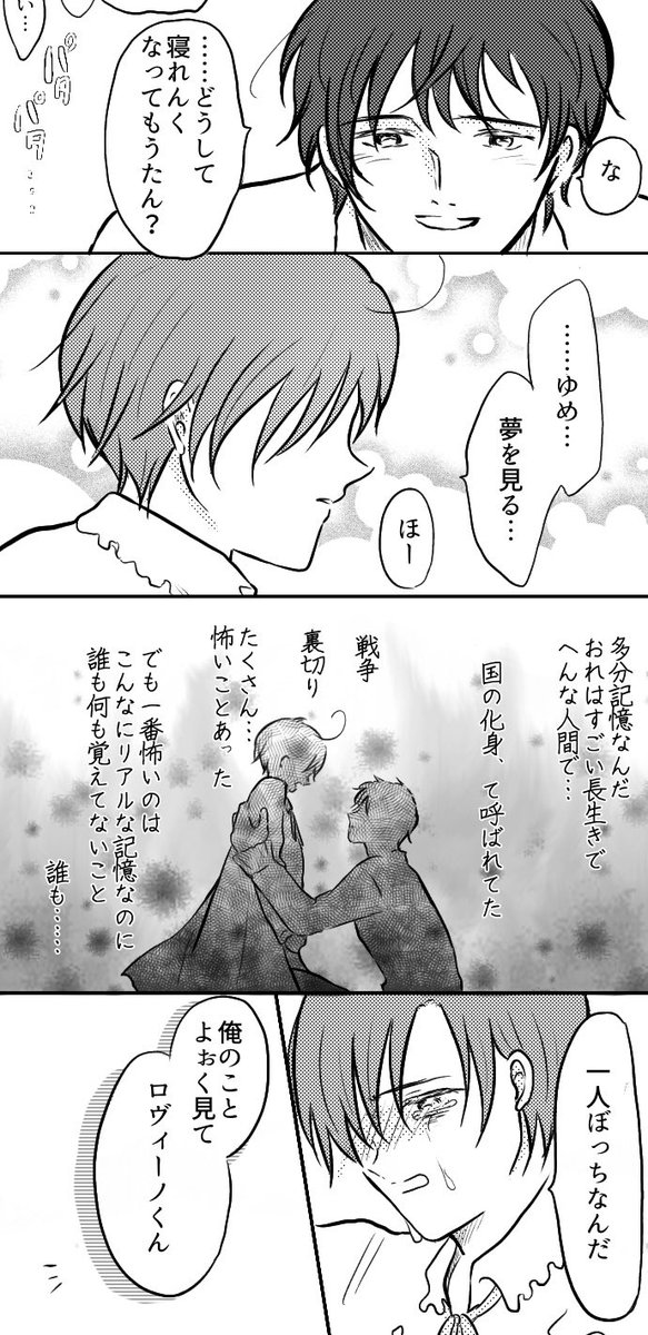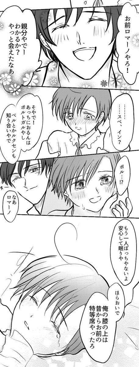 228 1794 アモーレフォロワーが「親分に守られて生きすぎてイタちゃんの言葉がわからなくなっているロマみてぇなァ」とツイートされてたので描いてみました 22/09/30 19:42