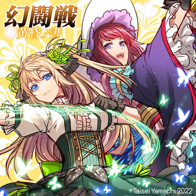 そしてもう気づいて下さってる方もいらっしゃるのですが、今開催中の【幻闘戦 魔道士への道 黄昏ノ書】の総合等級報酬「リフィル&ルリアゲハ」のカードイラストを担当させて頂きました! 第一回幻闘戦の報酬とか光栄すぎる!。゚( ゚´人` ゚)゚。 皆様是非ともGETして頂けると嬉しいです! #黒ウィズ twitter.com/colopl_quiz/st…