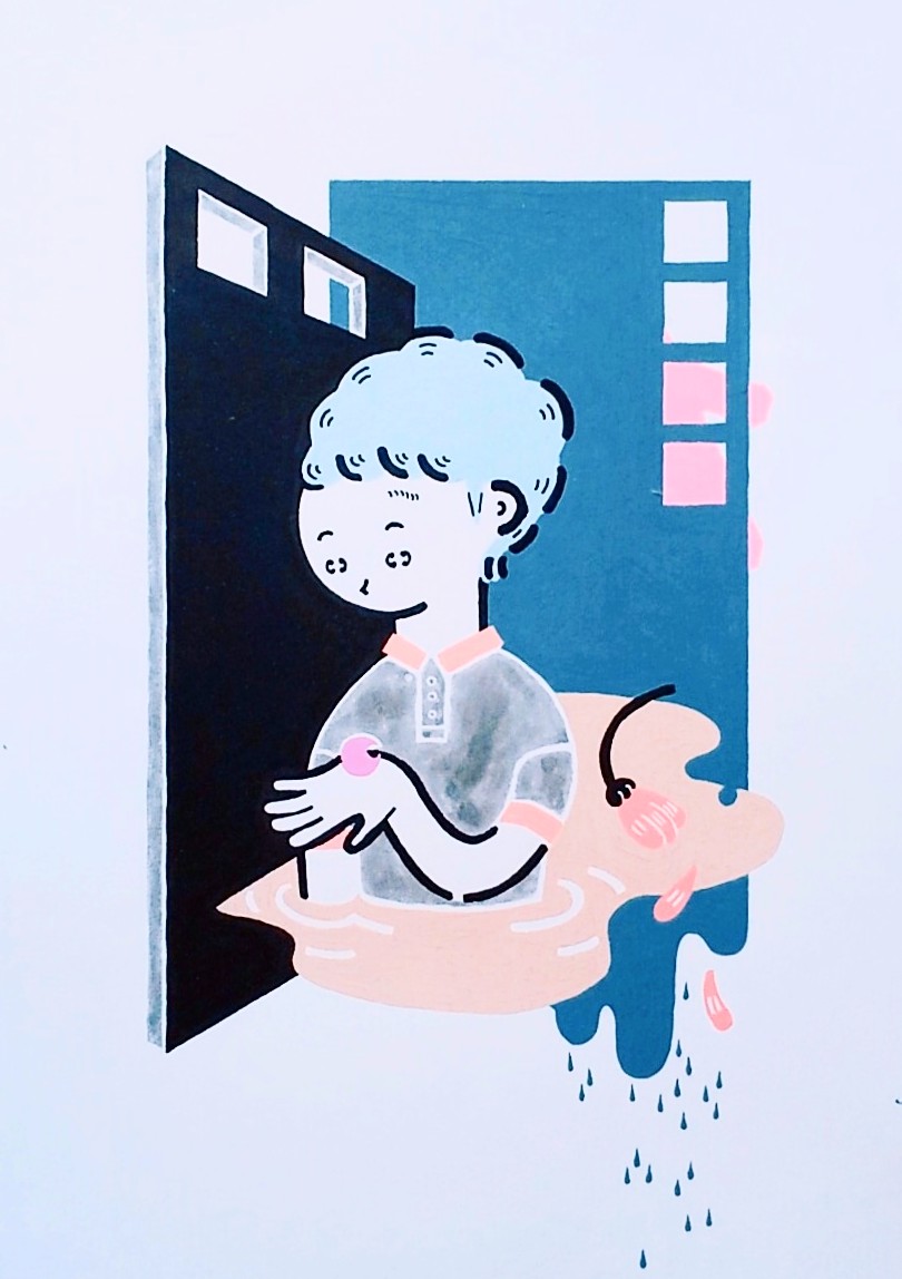 ○ 寝起き やかん ○ 朝のルーティンシリーズ #イラスト #アナログイラスト #カラフル #白湯 #パジャマ