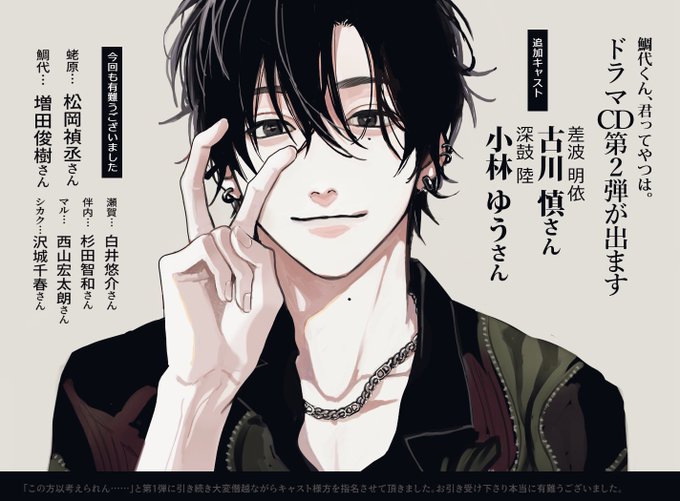 🐟更新&お知らせ🏝️ 本日6月20日「鯛代くん、君ってやつは。」の最新話を更新致しました。 🐟最新話⇨ comic.pixiv.net/works/2839 🎧そしてドラマCD第2弾が11月17日発売決定です!🌊 ▼PVと詳細は引用ツイートをご確認下さい🎣(予約開始してます) よろしくお願い致します! twitter.com/blcd_cel/statu…