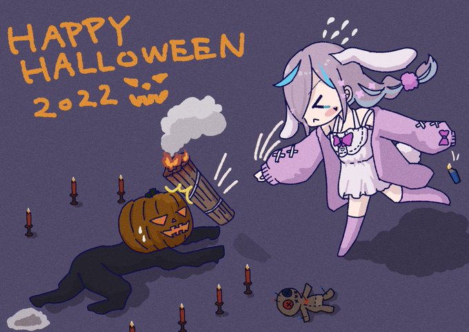 10 74 スマッジスティックを焚いてゴースト(ハロウィン仕様)を撃退するイルの図です🎃 #イルみて 22/10/27 02:08