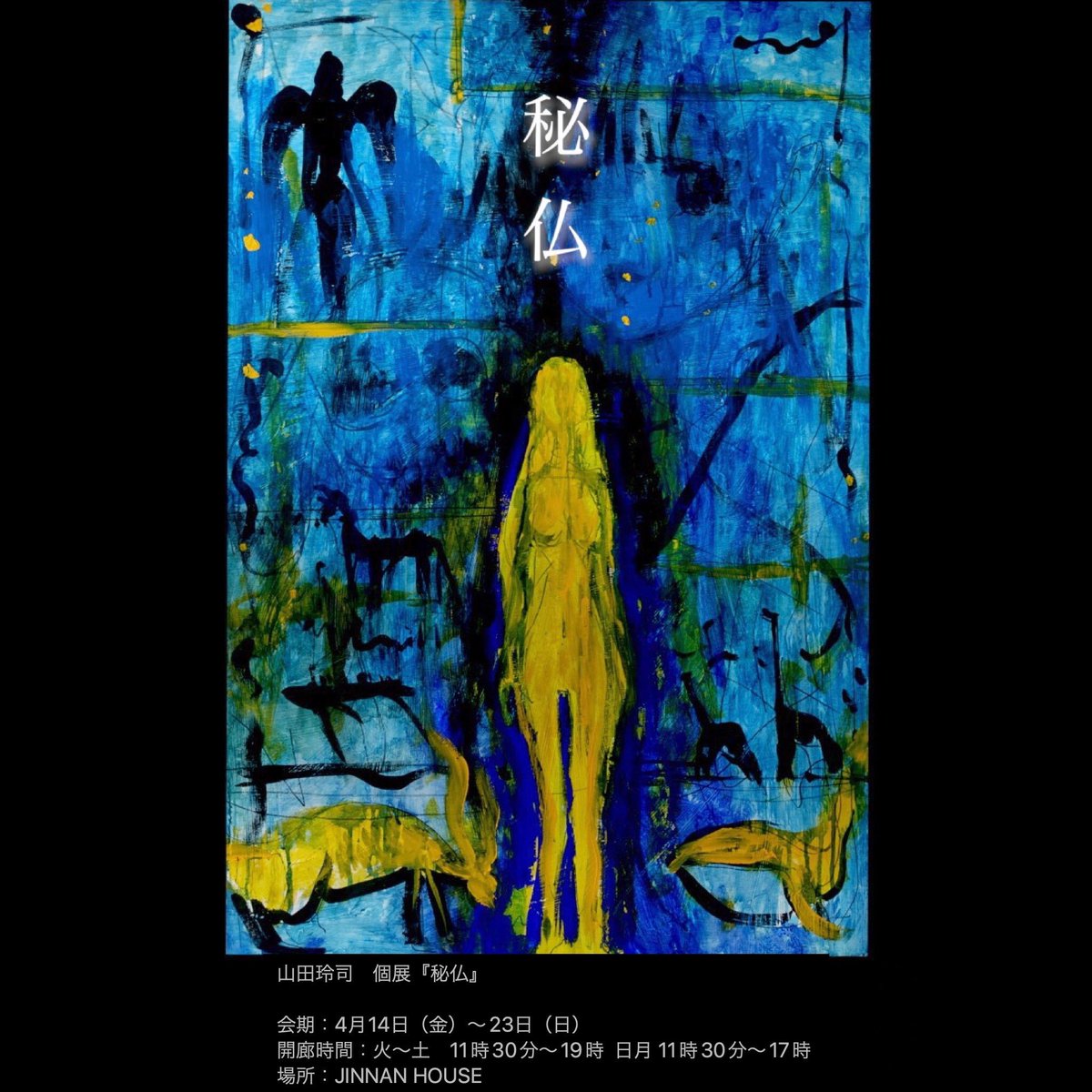 山田玲司 個展『秘仏』 会期:4月14日(金)〜23日(日) 開廊時間:火〜土 11時30分〜19時 日月 11時30分〜17時 場所:JINNAN HOUSE goo.gl/maps/r2P3GicMS… 入場:無料(1 drink order) • お支払いはキャッシュレスのみです。クレジットカード、交通系IC、paypayがご利用いただけます