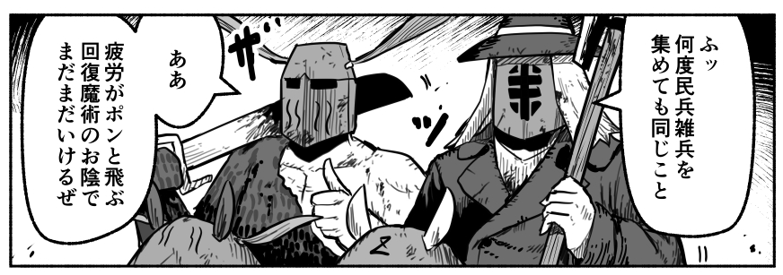 というわけで本日吉日、吉田の最新話が出ました。 ファンタジイ世界における戦争の様相を頑張ってシミュレートしているのですが、なんか有効な作戦になればなるほど知性と道徳が下がるような気がします。 ・静画:seiga.nicovideo.jp/watch/mg691227 ・となジャン:tonarinoyj.jp/episode/316190…