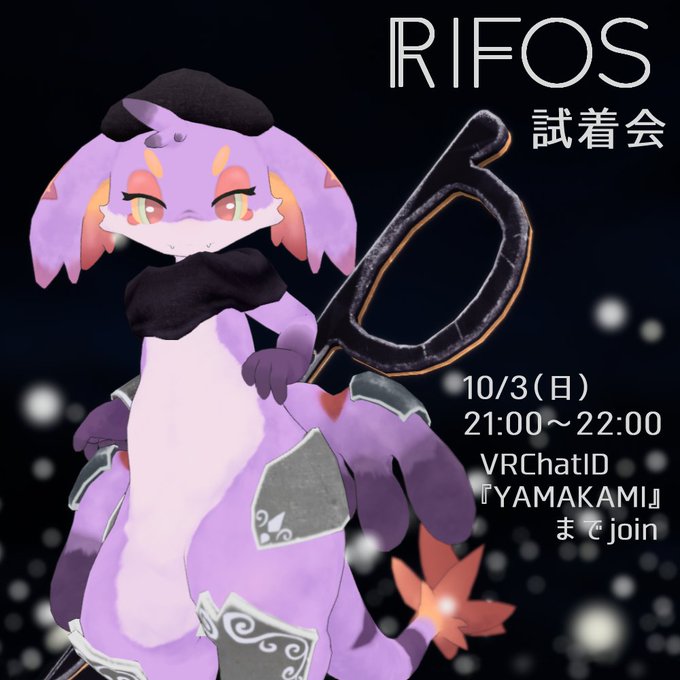 3DアバターRIFOS[リフォス]販売開始しました! デザインはMIRRE(@MIRREwk)さん アバター制作を私やまかみが担当しました。 VRChatのAvatars3.0に対応したアバターになります。 『Virtual Furry』および『AvatarMuseum4』にて試着もできますので、是非ご確認下さい~! anaguraworks.booth.pm/items/3305243