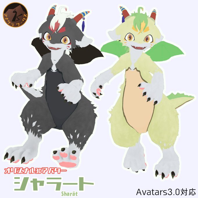 オリジナル3Dモデル「シャラート」【sharāt】 | Anagura Works anaguraworks.booth.pm/items/2627276 #booth_pm v2.00更新しました! VRChatのAvatars3.0に対応 メニューのオリジナルアイコン、新規で翼を追加等大幅更新してます...が、お値段は据え置きです! 購入済みの方は購入ページから更新版をDLできます