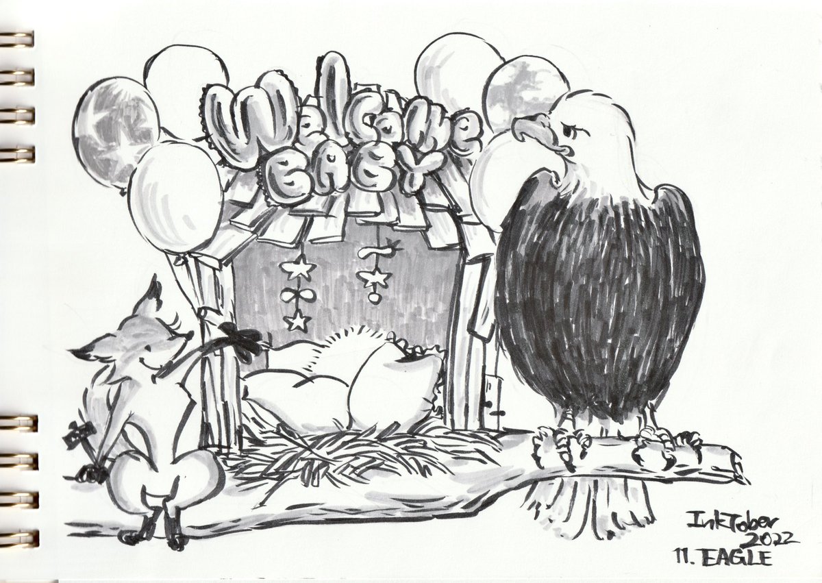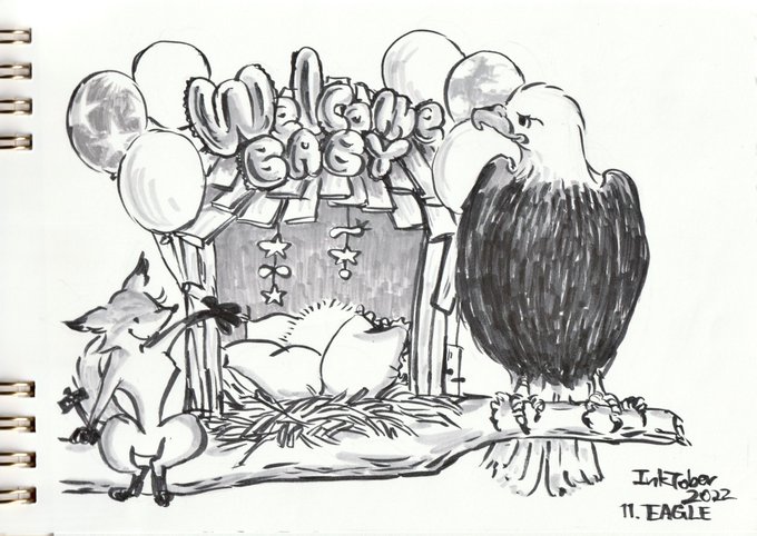 旅する🦊くん 巣が完成したみたい! 11.EAGLE He completed a fine crib. #inktober #inktober2022 #kuretake_inktober #kuretake_inktober2022 #illustration #illust