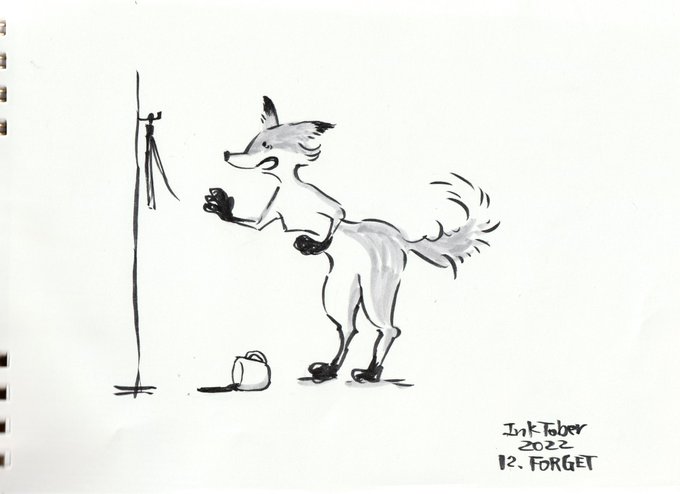 🦊くんの日常。 えっっ!? 12.FORGET Is it today!? #inktober #inktober2022 #kuretake_inktober #kuretake_inktober2022 #illustration #illust
