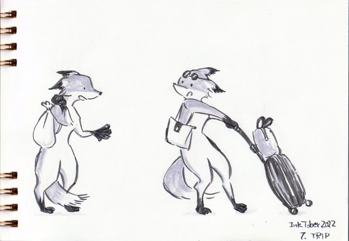 🦊くん、初めて彼女と旅行へ。 「そんなに!?」 「それだけ!?」 6.TRIP " Is it that much!?" " Is it that small!? " #inktober #inktober2022 #kuretake_inktober #kuretake_inktober2022 #illustration #illust