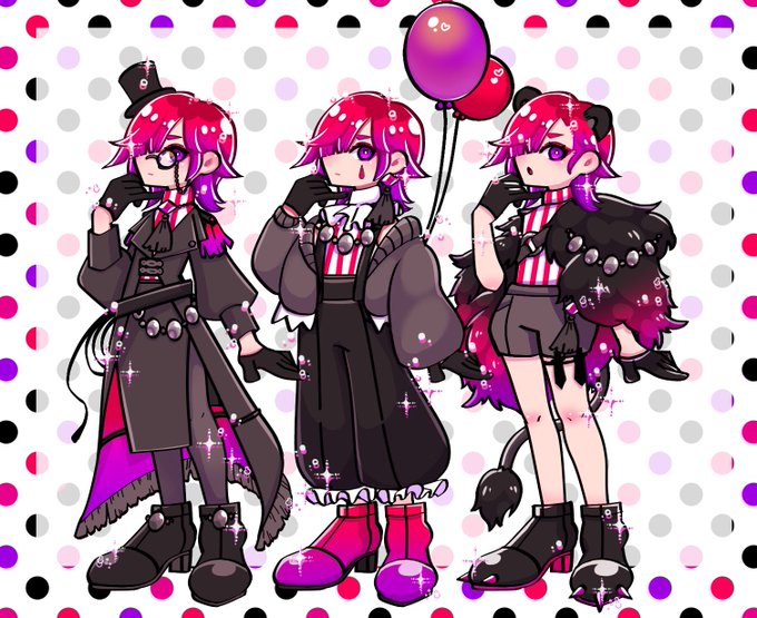 うちの子 エントちゃん描けた〜!!🎪✨ カワイイカワイイネ… お洋服は気まぐれに変わります!! 左から エント(団長のすがた) エント(ピエロのすがた) エント(猛獣使いのすがた) #創作 #イラスト