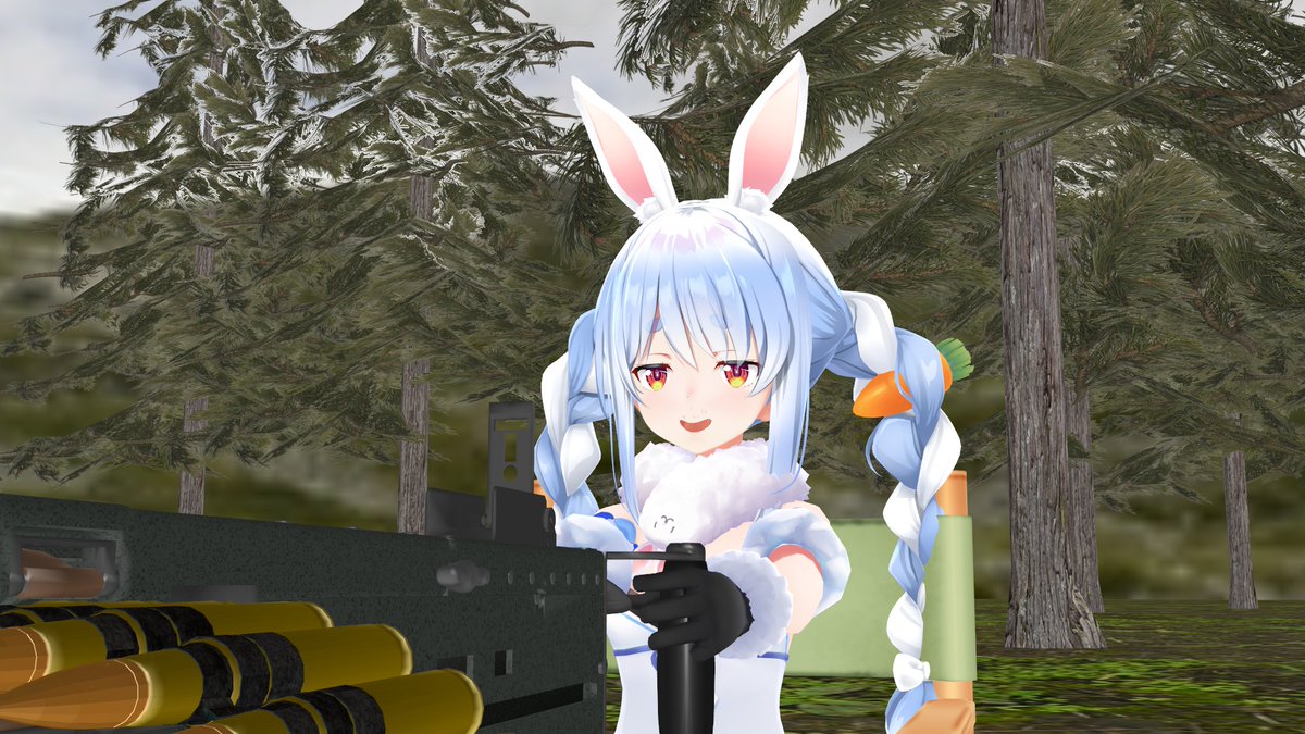 M2機関銃を構えるぺこら ぺこら「これで敵も蜂の巣ぺこ」 #MMDホロライブ #ぺこらーと