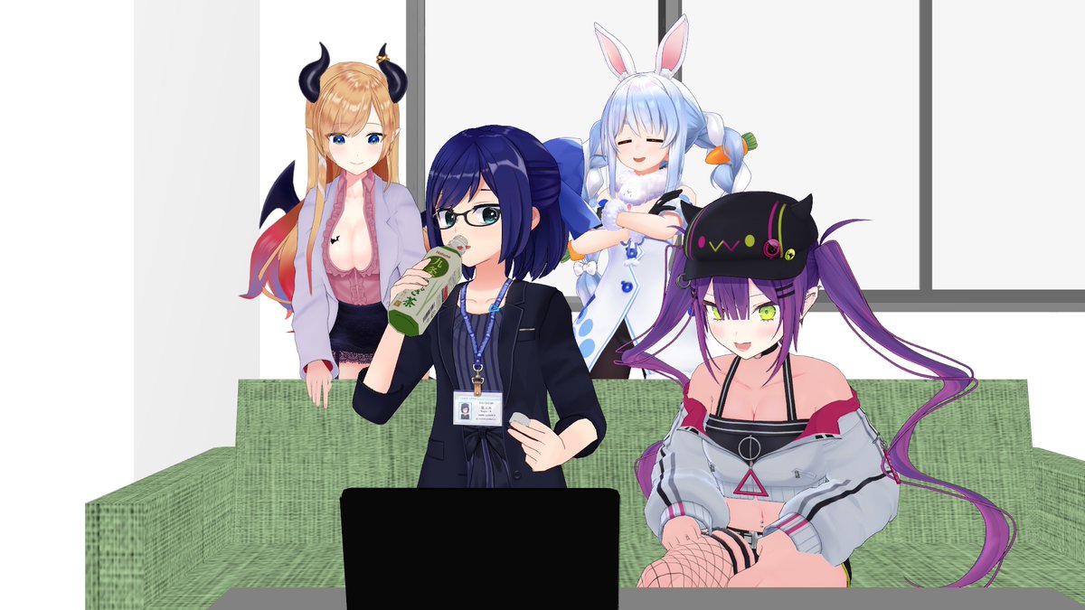 仕事中のAちゃんと周りで見ているホロメン #MMDホロライブ #絵ーちゃん #ぺこらーと #TOWART #しょこらーと