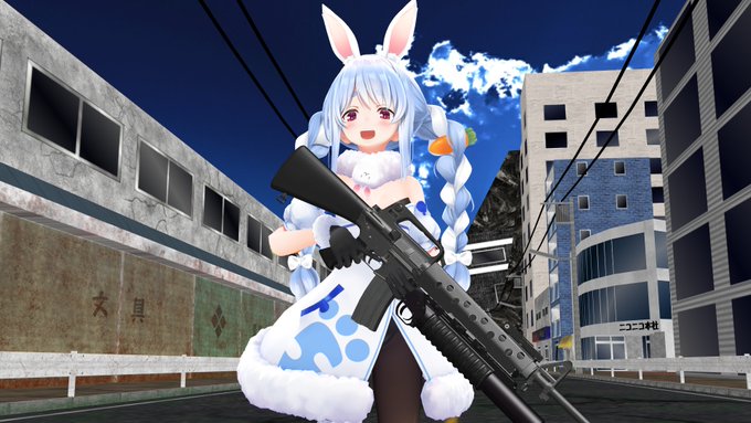 M16A2ライフルを手に見おろすぺこーら ぺこら「ペーコペコペコペコ♪」 #MMDホロライブ #ぺこらーと