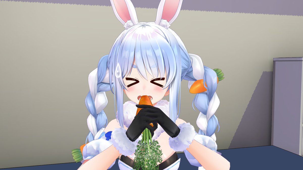 人参を丸かじりするぺこら。 ぺこら「ひぃ、、固い」バキッ、ボリボリ ぺこら「まだある、、後何口あるぺこなんだよ汗」 #MMDホロライブ #ぺこらーと