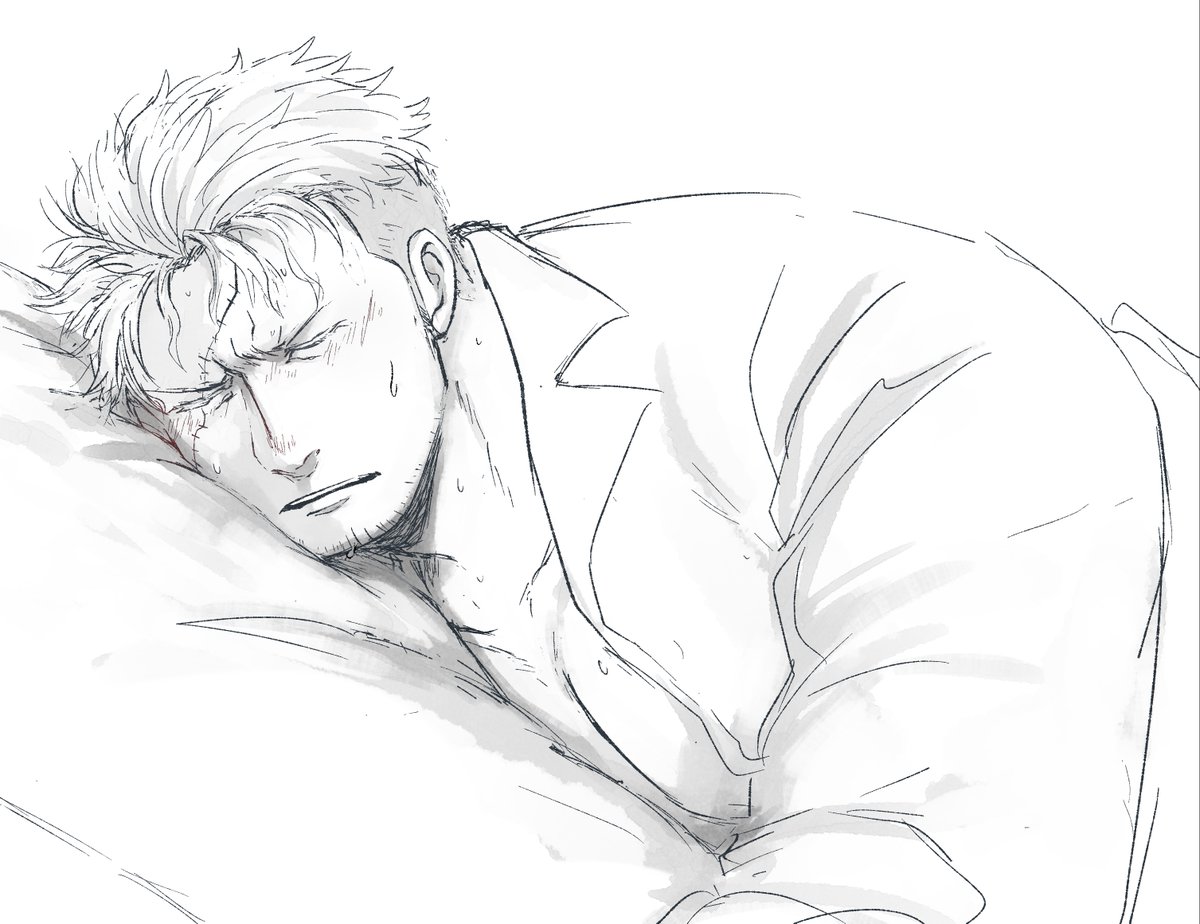 > なんかしらの理由で発熱してぐったりしてるスモーカー中将が見たいです #odaibako_yamakazi47 odaibako.net/detail/request… 発熱を自覚する前の朝方のイメージで描きました
